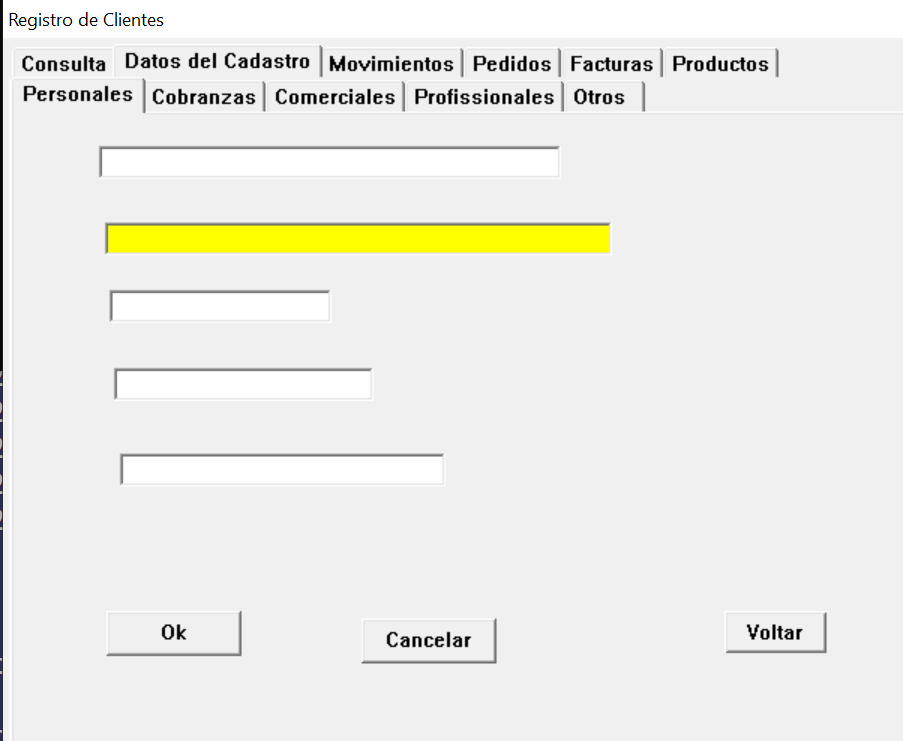@ 1, 22 TAB oTab2 ITEMS { "Personales", "Cobranzas", "Comerciales", "Profissionales", "Otros" } ;