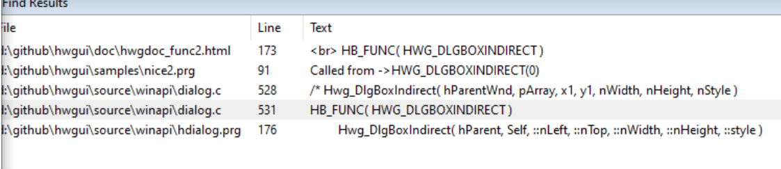 No editor de textos, find in files, aqui configuro pra procurar em .PRG, .C, .CH, .RC e outros.
