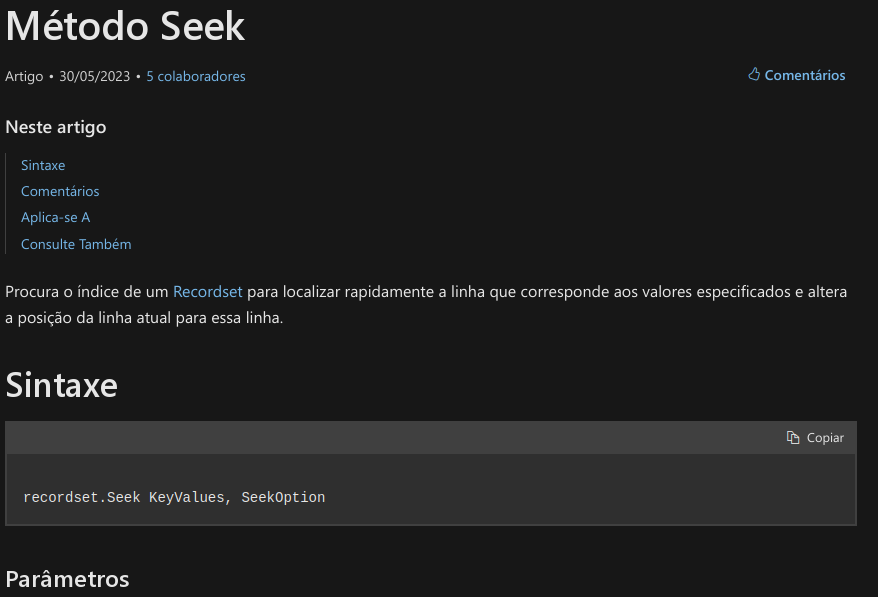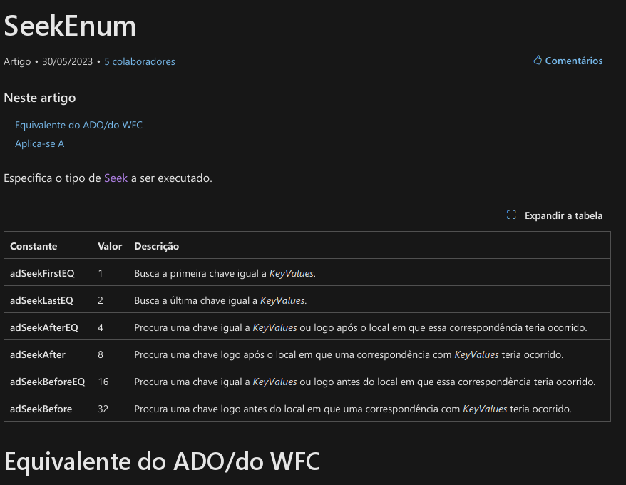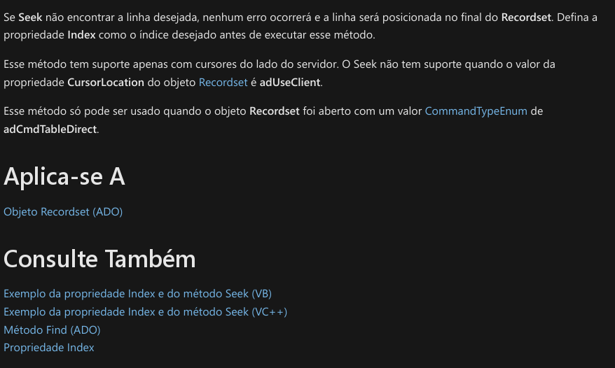 O ADO não tem seek