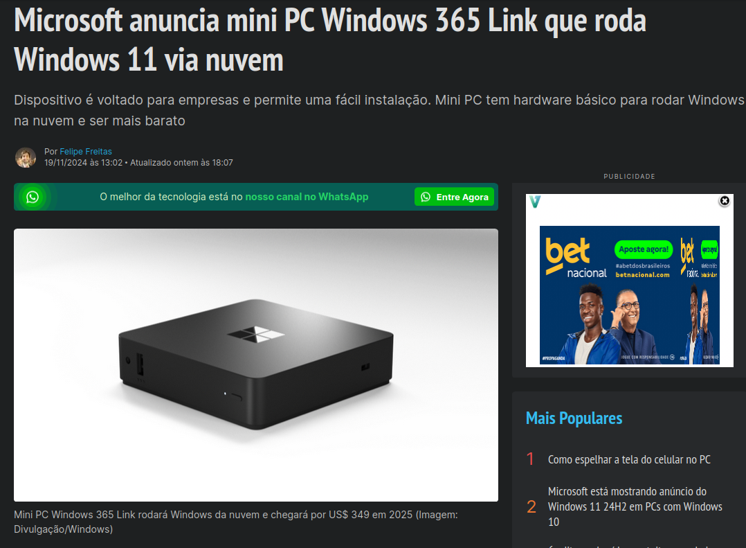 Não é para o BraZil!A big tech espera vender o produto pelo preço de US$ 349 (R$ 2.018).