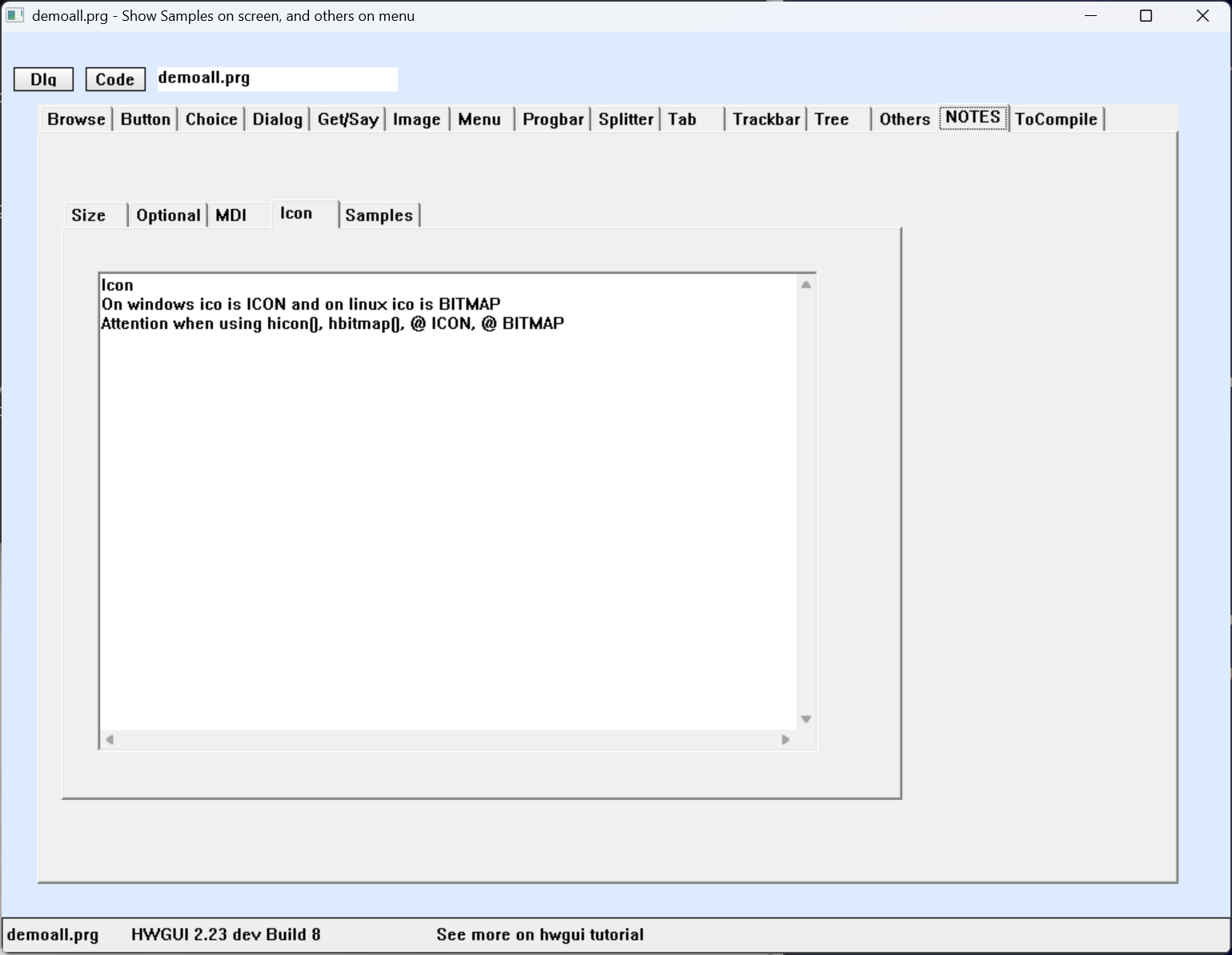 cTxt += "On windows ico is ICON and on linux ico is BITMAP" + hb_Eol()