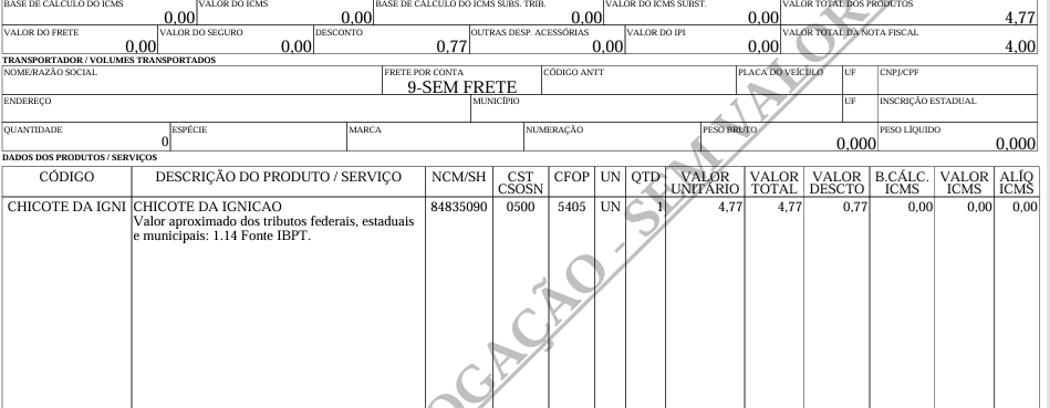 Se faltar espaço no Danfe, a coluna pode ser omitida.