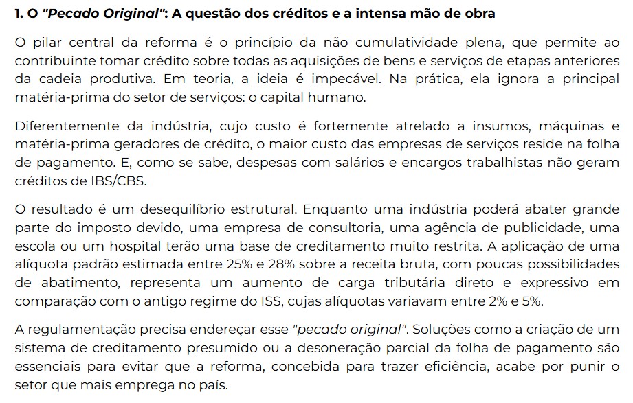 Tá posto na lei, nas NTs, explicado por todo mundo, inclusive com reclamação do setor de serviço que antes pagava 5% de imposto e agora vai para os 28% prováveis.